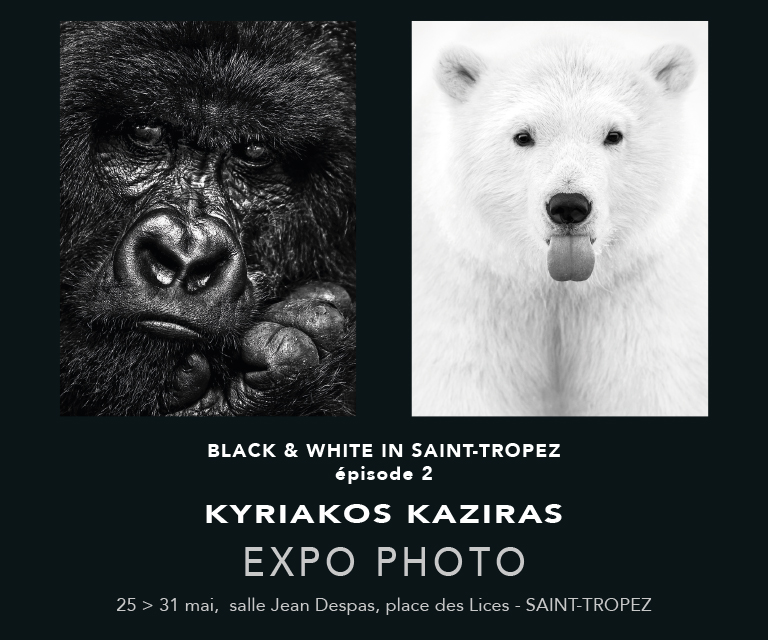 L’exposition photographique “Black & White in Saint-Tropez” de Kyriakos Kaziras, organisée par le Grand Prix Photo de Saint-Tropez, nous plonge dans un univers fascinants.Un hommage à ces animaux majestueux mais vulnérables.